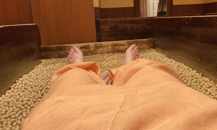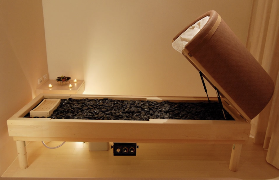 日本玉川溫泉北投石岩盤浴|岩盤浴是一種躺在加熱了的天然礦石上的療法,當中最為人熟悉的是出產自日本秋田縣玉川溫泉找到的「北投石」。透過躺在溫熱的天然礦石上,令身體深層大量出汗,從而達到排出身體多餘分子及毒素之效。